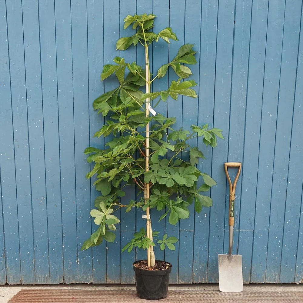 Aesculus hippocastanum is a statuesque tree that will grow to 9 x 8 meters in 20 years. This Horse Chestnut tree is an excellent environmental choice as it has a long life span in which it will store a large amount of carbon. The flowers, leaves and conkers also provide a source of food to a number of different species of wildlife. When planted in any well-drained soil, it is decidedly hardy and tolerant of exposure.